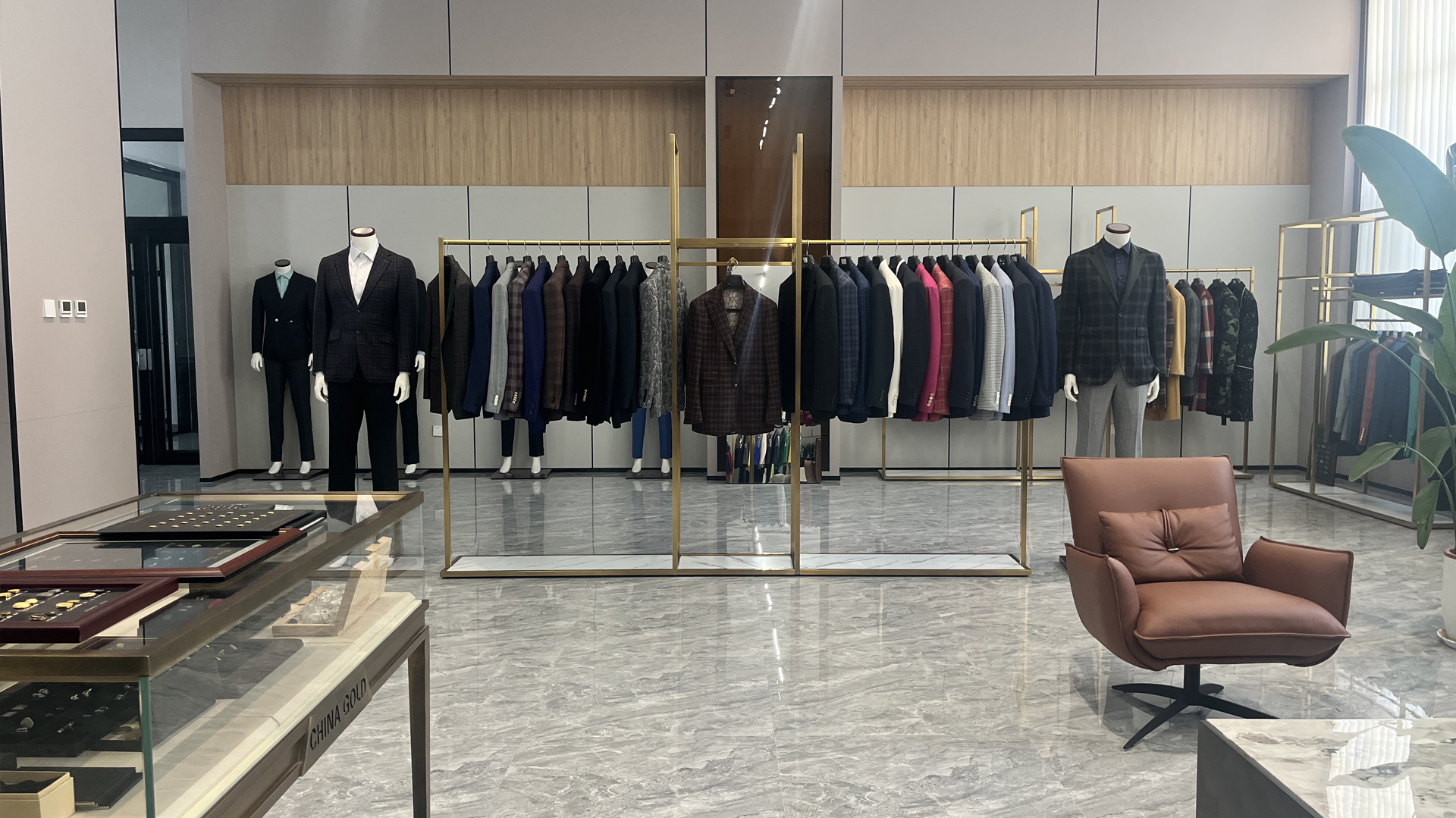 開放式工廠 行政辦公樓 形象展示店 展廳一角 樣衣展示 自動化裁剪 車間精細生產 流水線成品庫